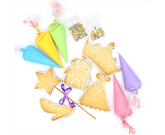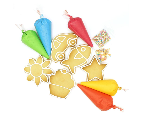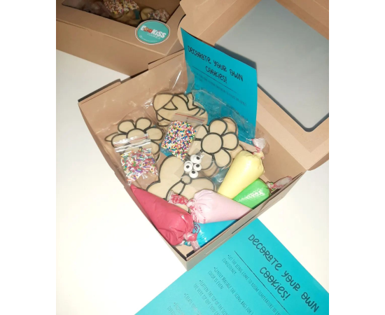 Fun Cookie Activity kits for Kids! Each kits comes with 5 buttery cookies (shapes based on requirement), 5 mini icing bag and two sprinkle packets!